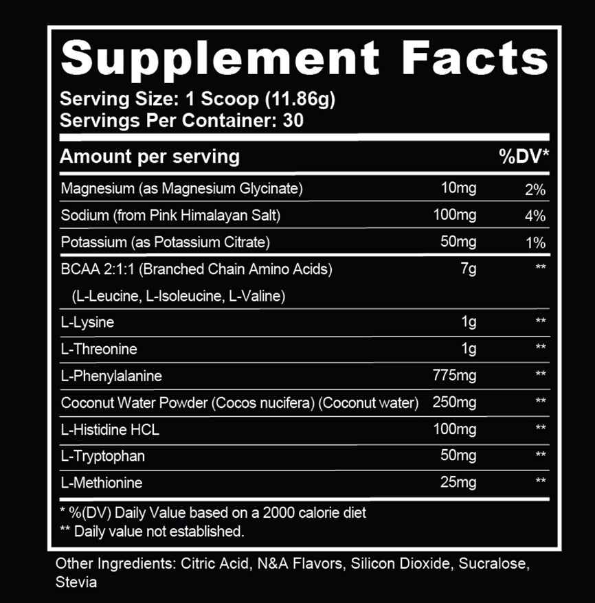 Amino Rx is a carefully formulated blend of Essential Amino Acids (EAAs) and electrolytes designed to: